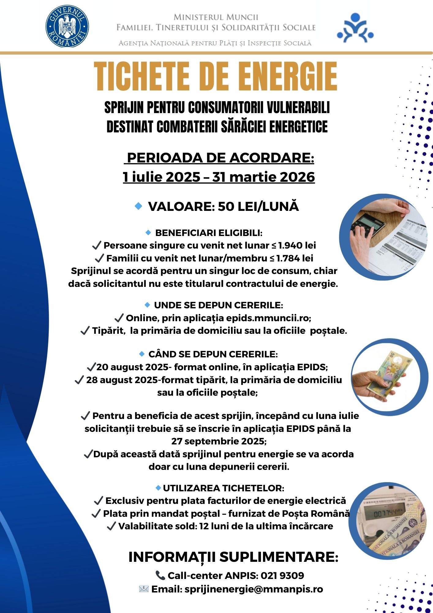 Legi Lege 196_2016 privind venitul minim de incluziuneHG 1154_2022 norme de aplicare a Legii 196_2016 Formulare tipizate Model cerere declaratie pe propria raspundere pentru acordarea venitului minim de incluziuneAngajament de plataModel declaratie pe propria raspundre privind modificarile intervenite in componenta familiei sisau veniturile acesteia Conditii de acordare Conditii de acordare a venitului minim de incluziuneActe necesare pentru acordare venitului minim de incluziuneInformatii privind venitul minim de incluziuneInstructiunile privind nivelurile de venit categoriile de venituri care se iau nu se iau in calcul modul de calcul a cuantumului venitului minim de incluziuneListabunurilor ce conduc la excluderea acordarii venitului minim de incluziune Hotarari HOTARARE NR. 8 din 20.03.2025- Plan de actiuni si lucrari de interes local -VMI 2025HOTARARE PAC-VMI Ghid EPIDS Cerere sprijin energieFOAIE COLECTIVA DE PREZENTA VMI -AUGUST 2025PERSOANE APTE DE MUNCA -VMI – LUNA SEPTEMBRIE 2025SITUATIA LUNARA A ACTIUNILOR LUCRARILOR DE INTERES LOCAL PROGRAMAT PTR BENEFICIARII DE VMI – LUNA SEPTEMBRIE 2025
